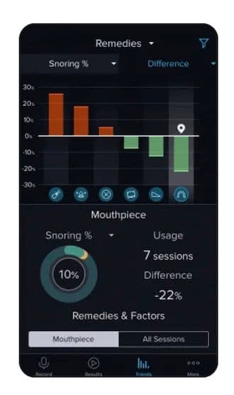 This snoring management app for iOS and Android gives measurements of snoring intensity and duration. Press start, place your phone next to your bed, and you’re ready to go to dreamland. With a 4.7/5-star rating in the Apple app store and a 4.2/5-star rating in the Google Play app store, customers are pretty pleased with this app’s features.